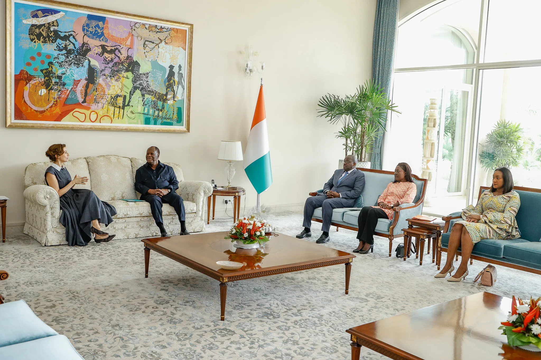 The President of the Republic, H.E. Mr Alassane Ouattara, met the Director-General of UNESCO, Ms Audrey Azoulay, at his Residence on Saturday 10 February 2024.